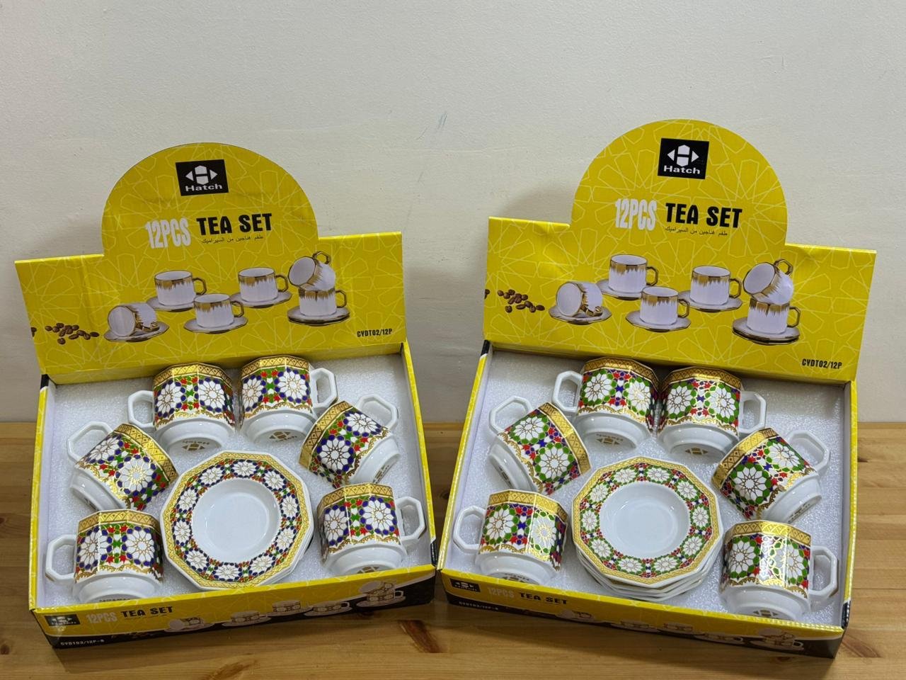 Ce service à thé de douze pièces allie porcelaine fine et motifs zelliges traditionnels multicolores pour servir vos invités avec élégance et une touche artisanale marocaine authentique lors de vos réceptions.